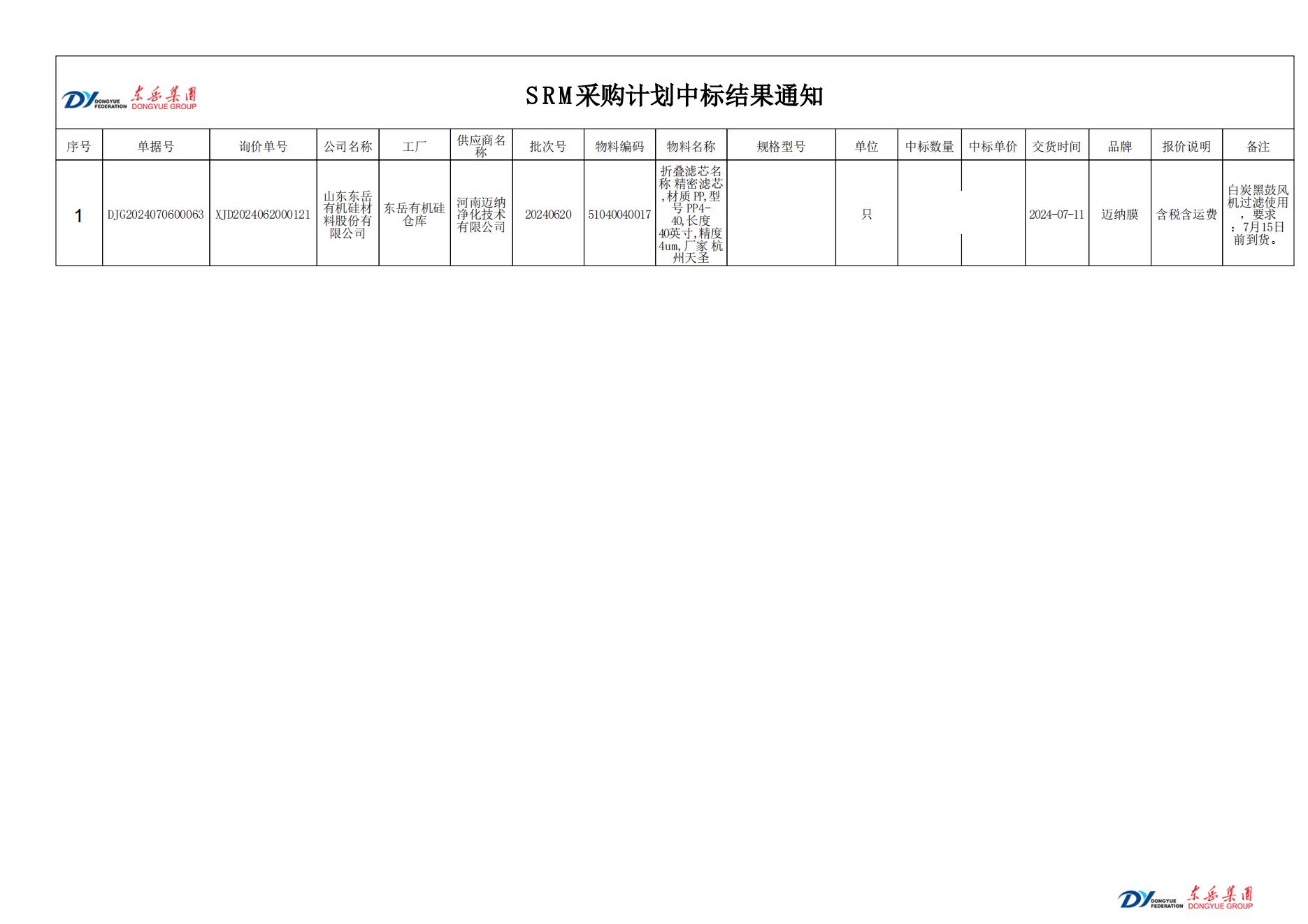 事記|邁納膜中標山東東岳集團膜采購項目