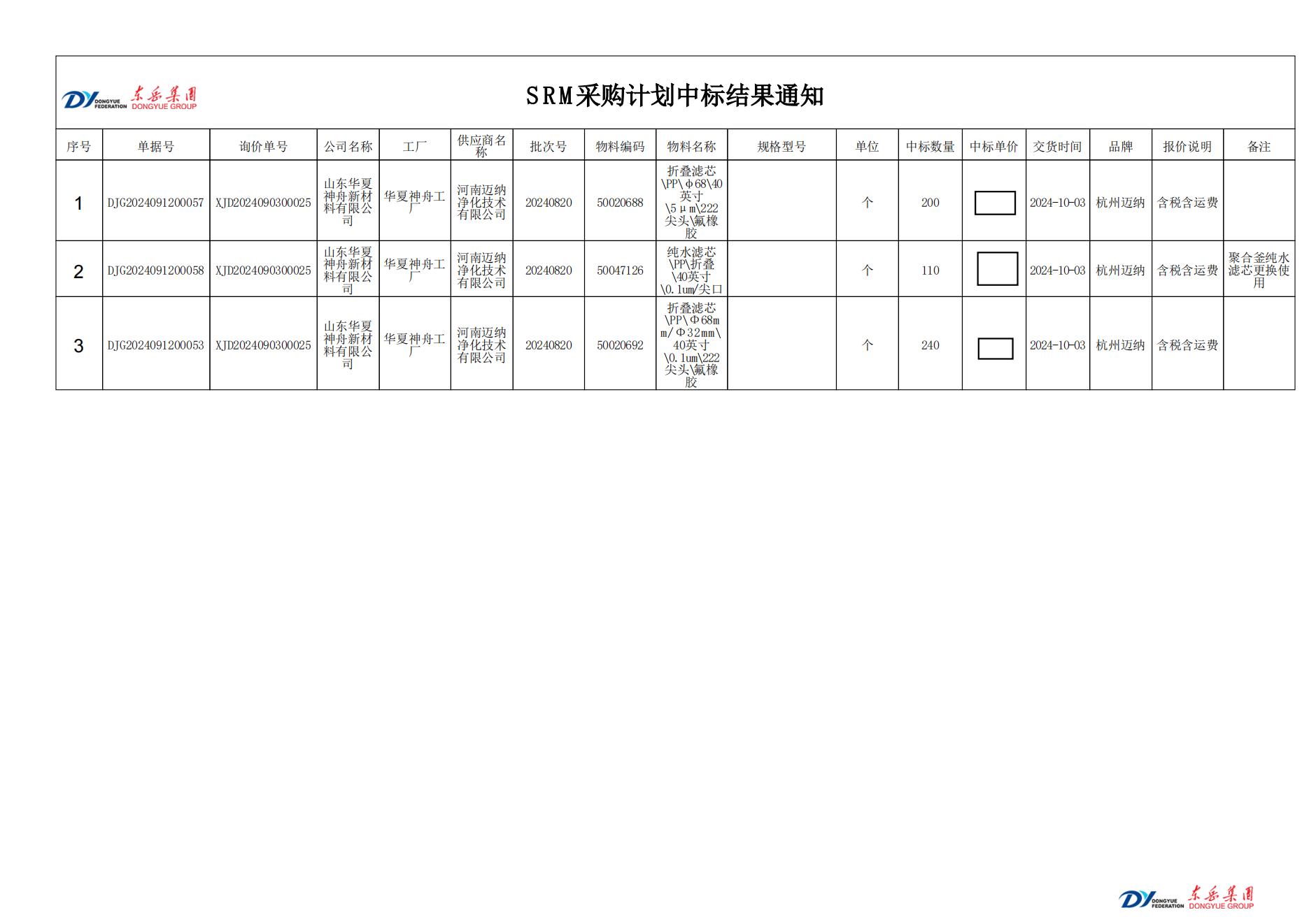 2024年9月13日,河南邁納凈化技術有限公司中標東岳折疊濾芯及純水濾芯采購項目!