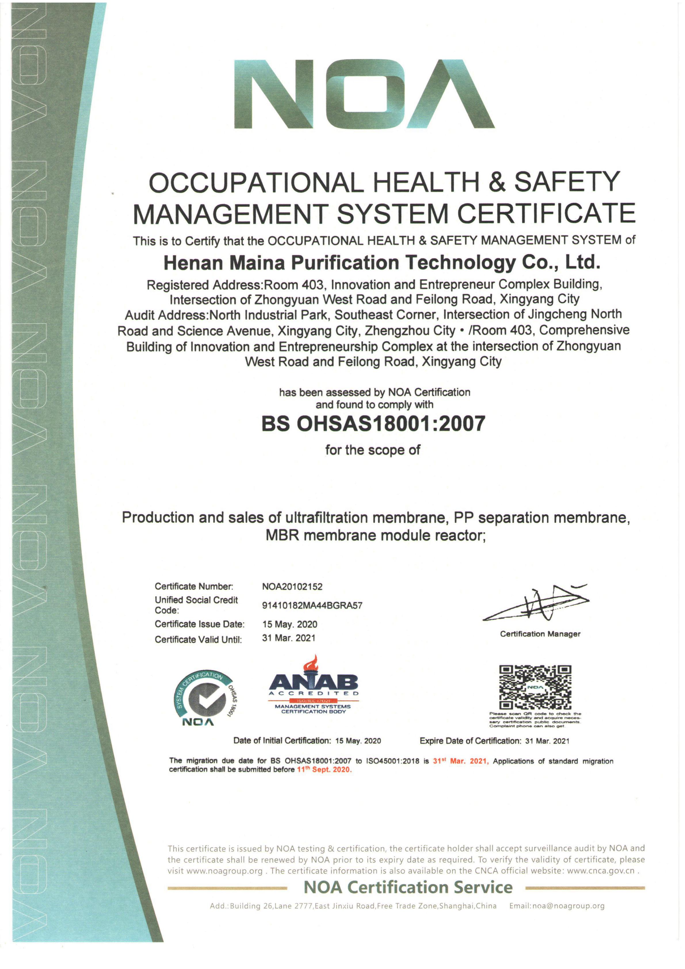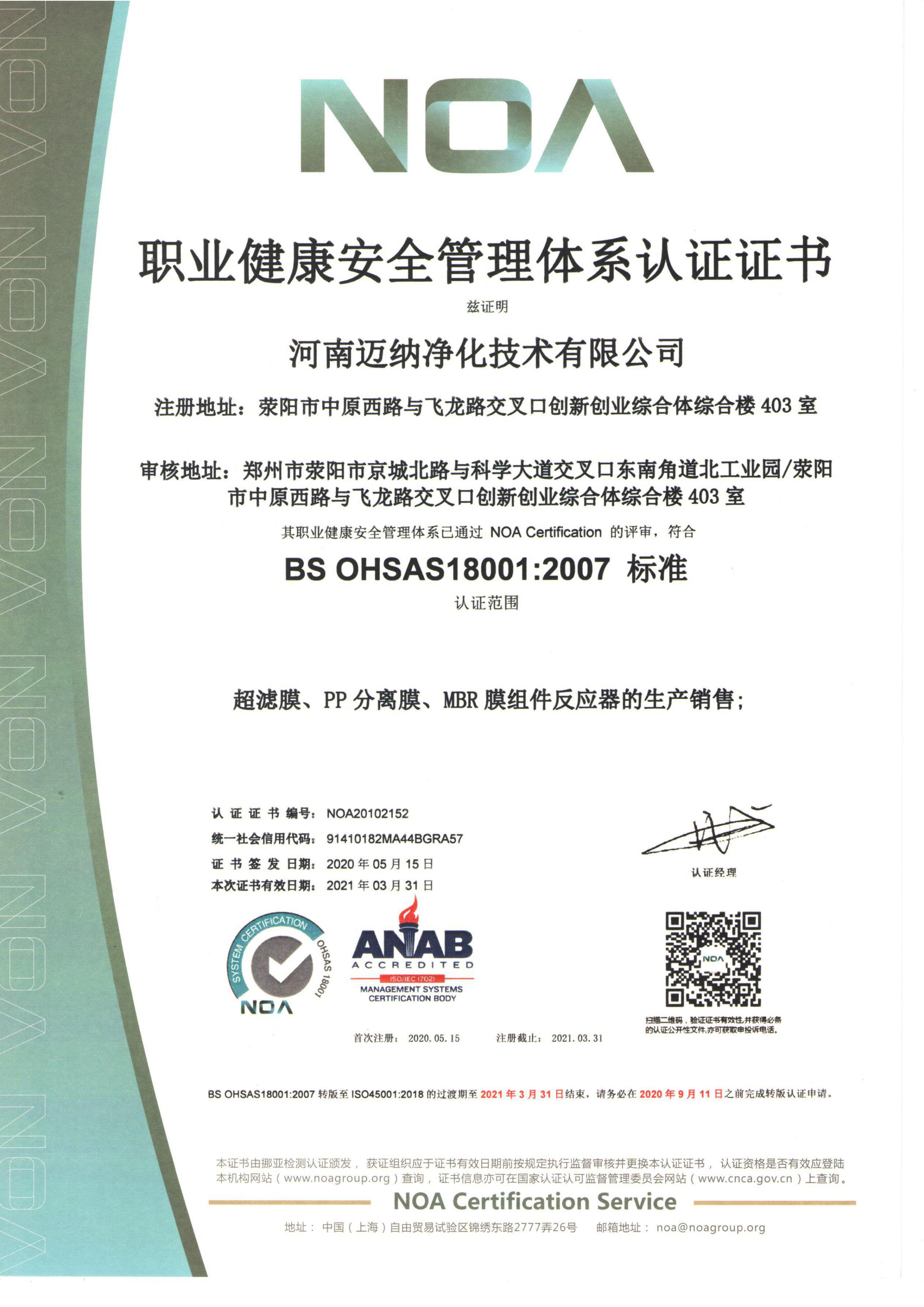 2019年,公司申報體系認證,并于2020年認證成功,并下發(fā)相關證書