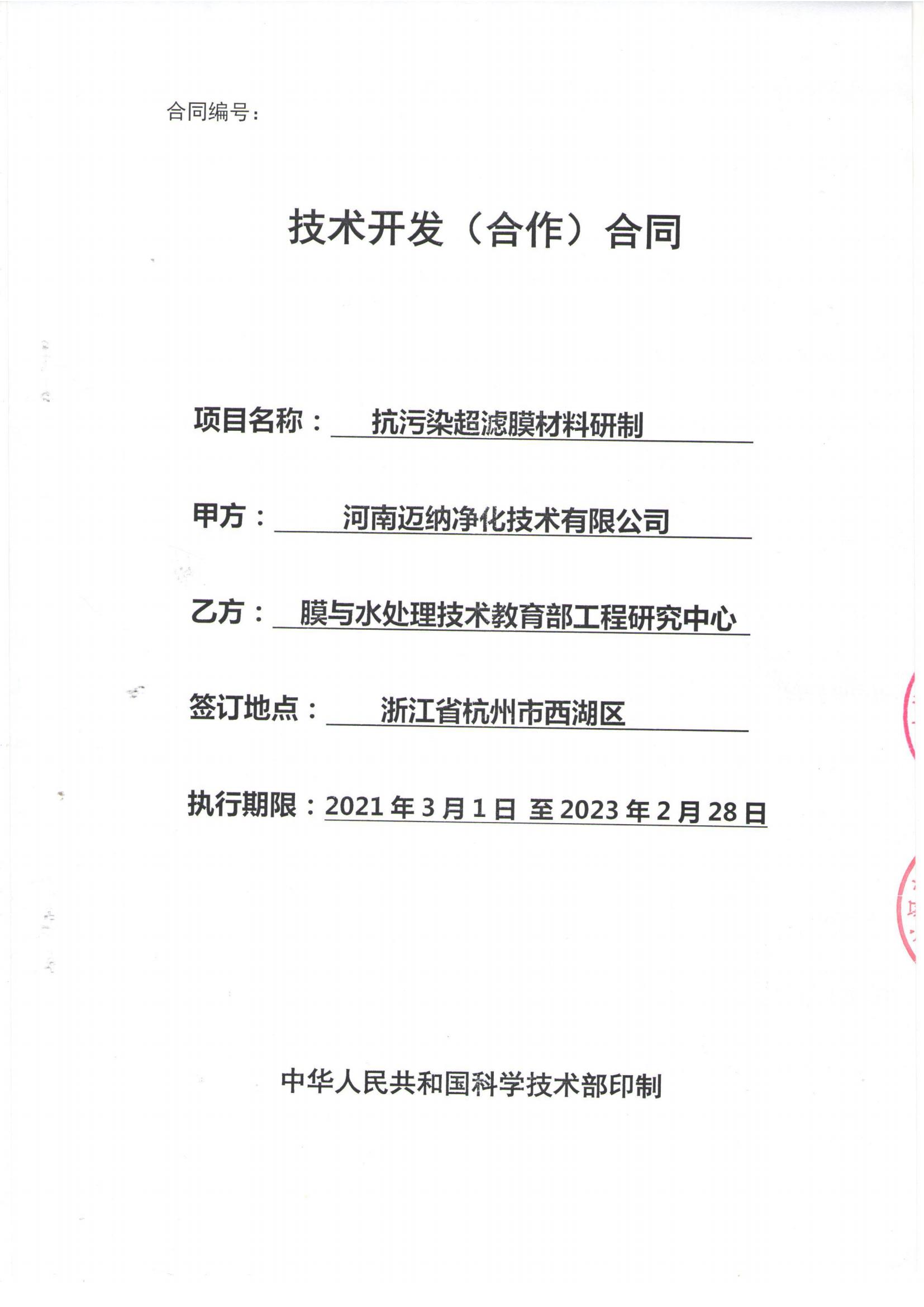 2021年3月1日,公司與膜與水處理技術教育部工程研究中心簽訂技術開發(fā)合作協(xié)議。