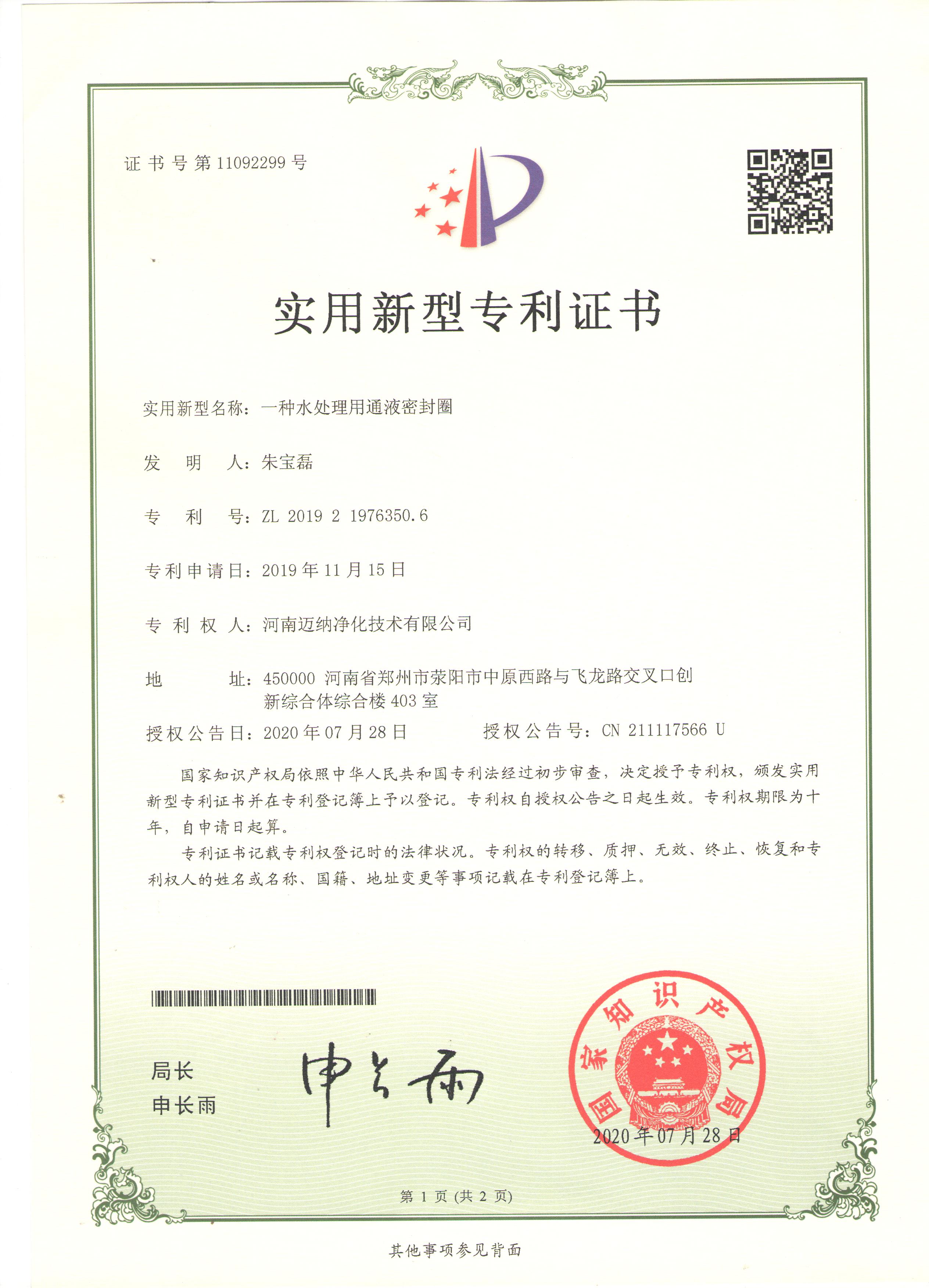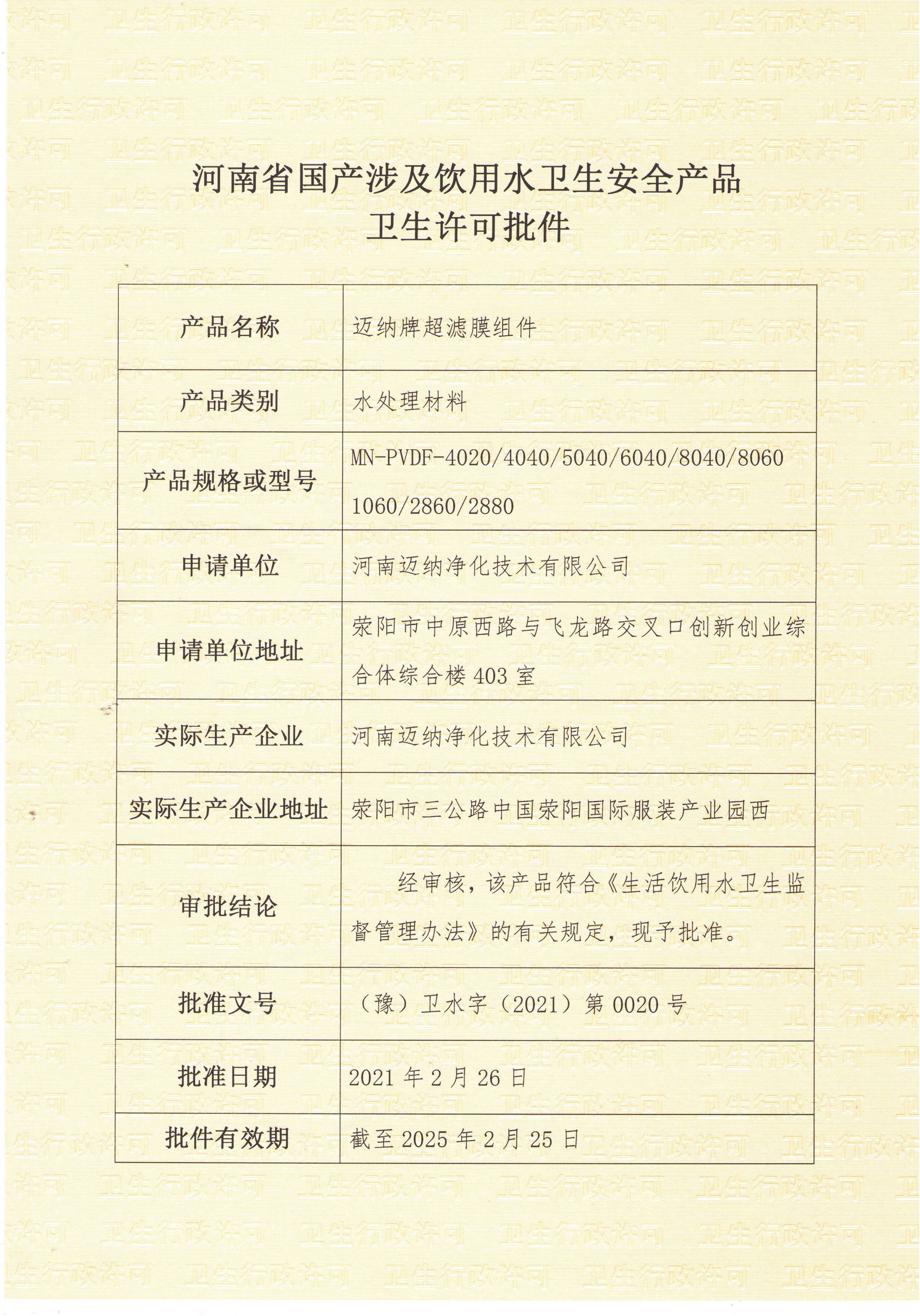 2021年獲得河南省涉水衛(wèi)生許可批件